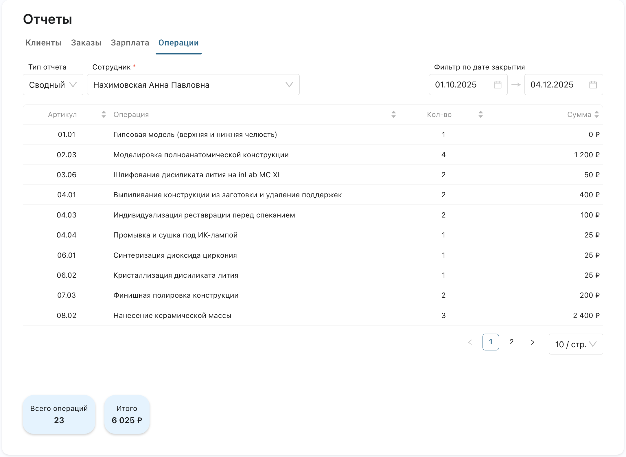 Узнайте, какие именно операции выполнил сотрудник и сколько заработал на каждой — полная прозрачность для техников и контроль для администраторов.