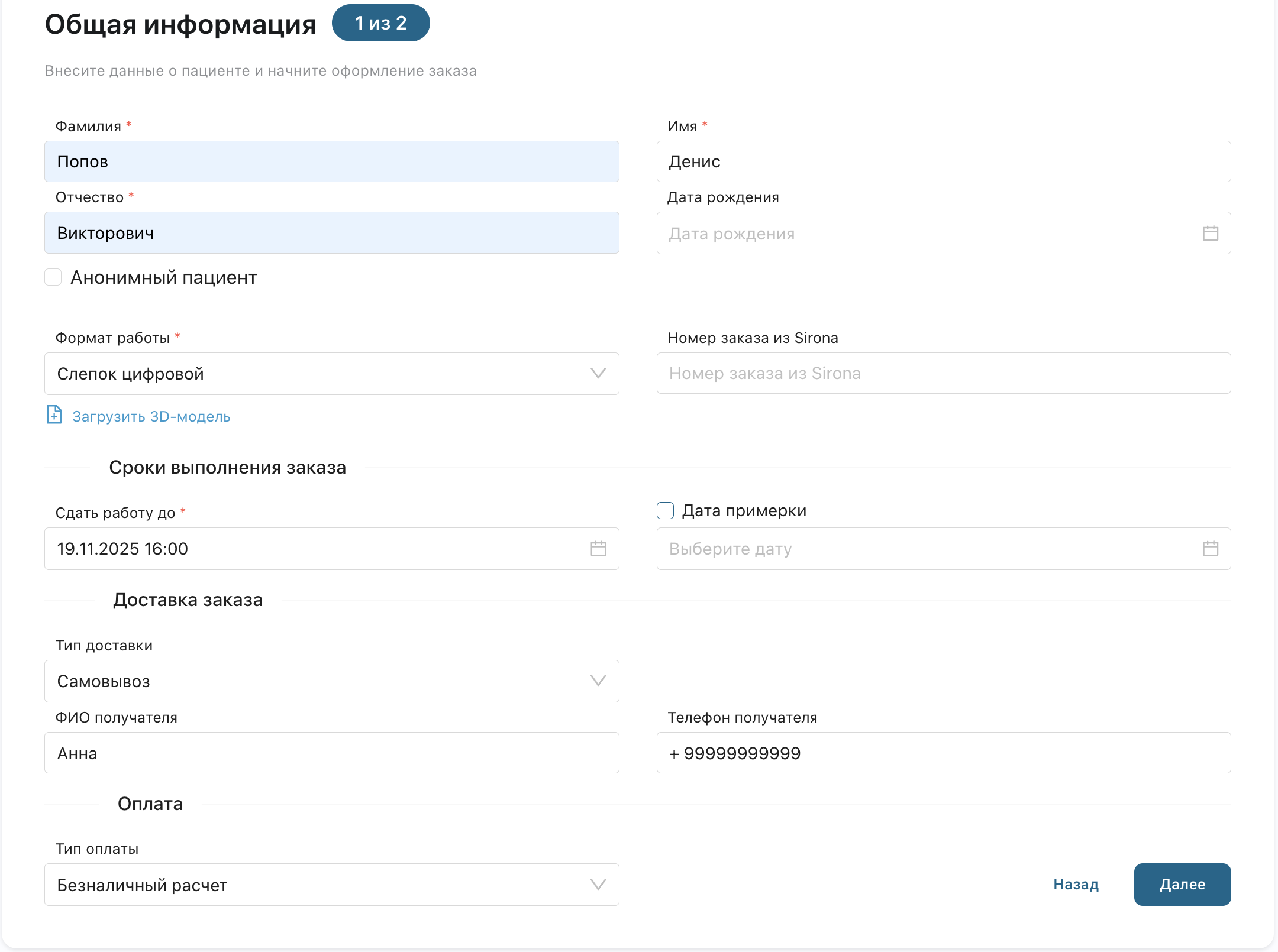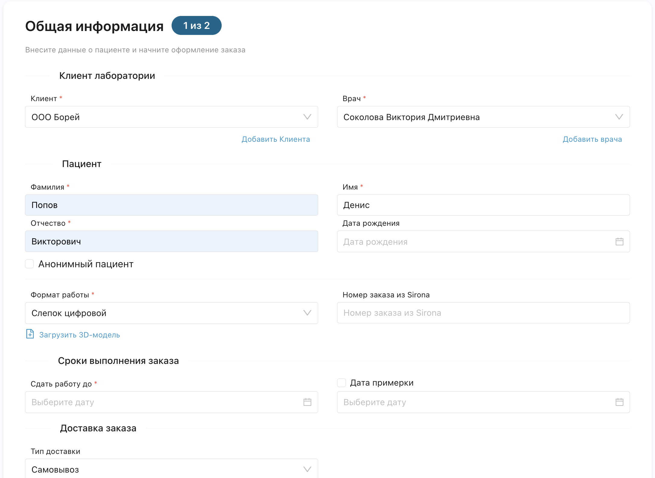 ✓ Как создать заказ (2 этапа: общая информация + карта зубов)